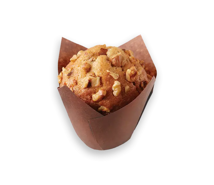 A soft, protein-packed muffin made with eggs and egg whites, oats, ripe banana, and grass-fed whey protein, lightly sweetened with maple sugar and finished with maple-syrup roasted pecans.