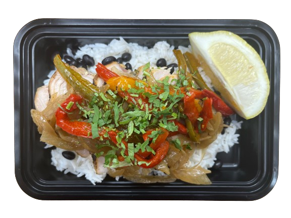 Sautéed shrimp served with Steamed jasmine rice. Fresh cilantro and lime juice. Fresh boiled black beans and hand-cut bell peppers. Topped with Carmelized onion & bell peppers